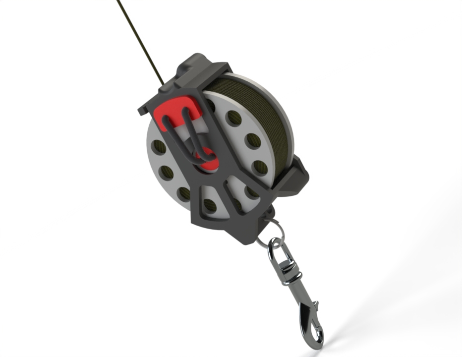 Die mit Luft gefüllte SMB wird dann nach oben „schießen“ und das Seil wird abgespult. Um das Seil in einer bestimmten Tiefe zu fixieren, z.B. beim obligatorischen Safetystop auf 5m, kann das Seil um zwei am Gehäuse angebrachte „Hörner“ gewickelt werden. So spult sich das Seil nicht selbstständig ab und ist trotzdem leicht und sicher wieder lösbar.