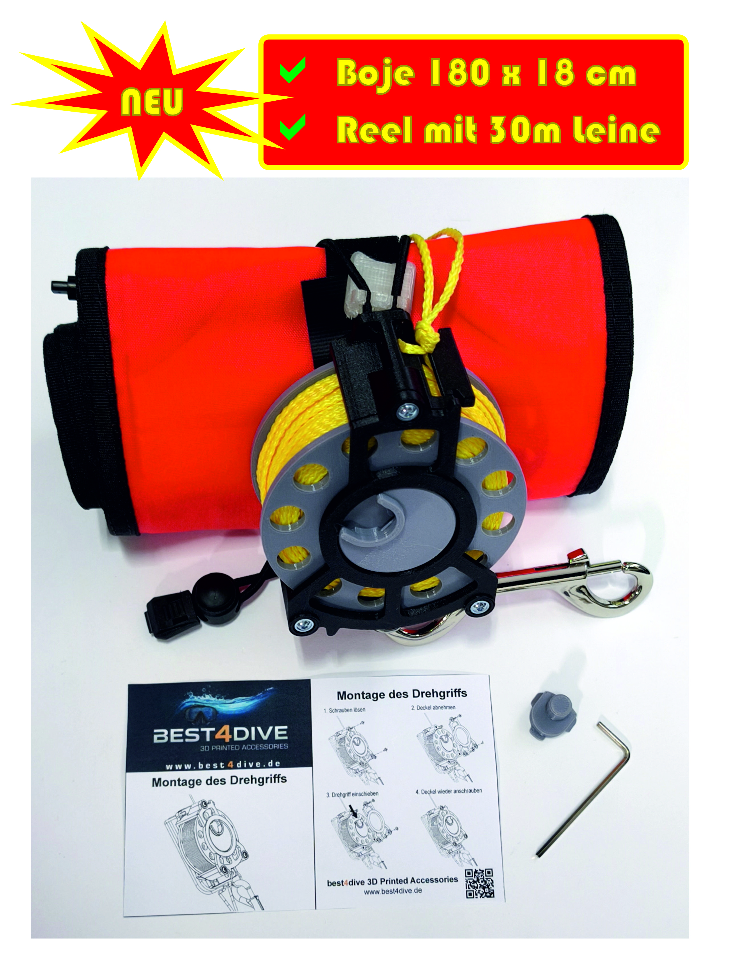 - Komplett-Set: Markierungsboje & Reel. ⚠️ Der Preis gilt für das komplette Set: