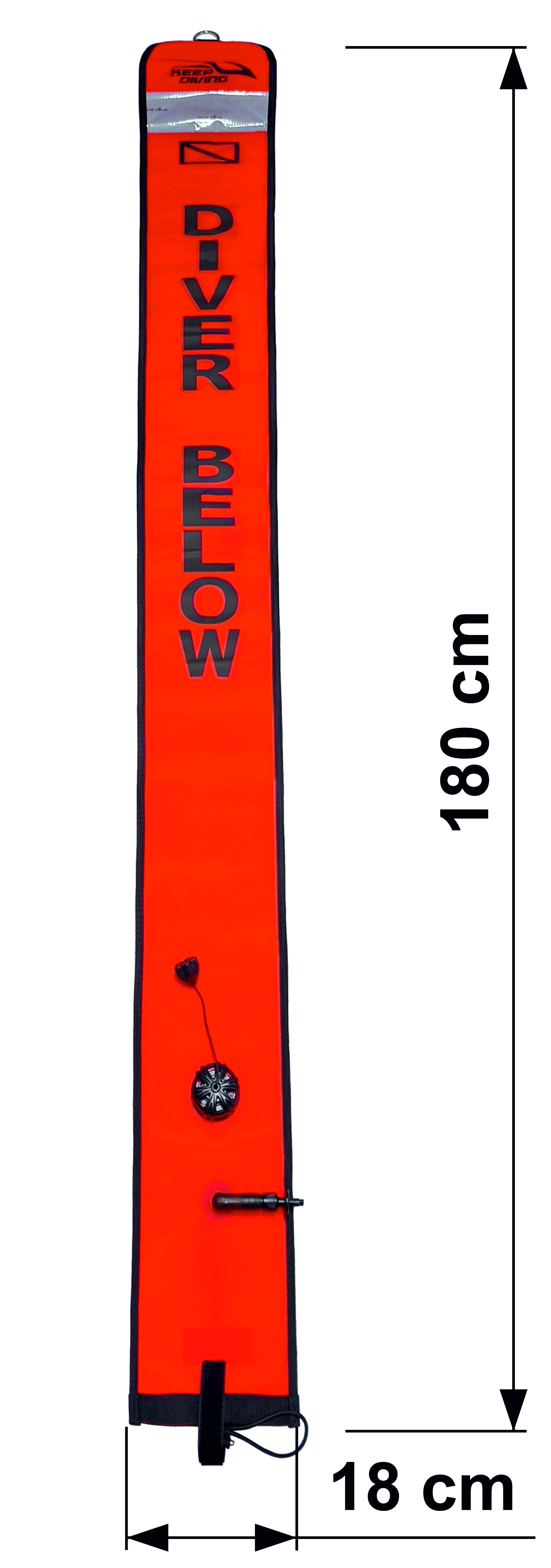 - Markierungsboje 180cm x 18cm & Reel mit Handschlaufe, mit Schlüsselring und Doppelkarabiner