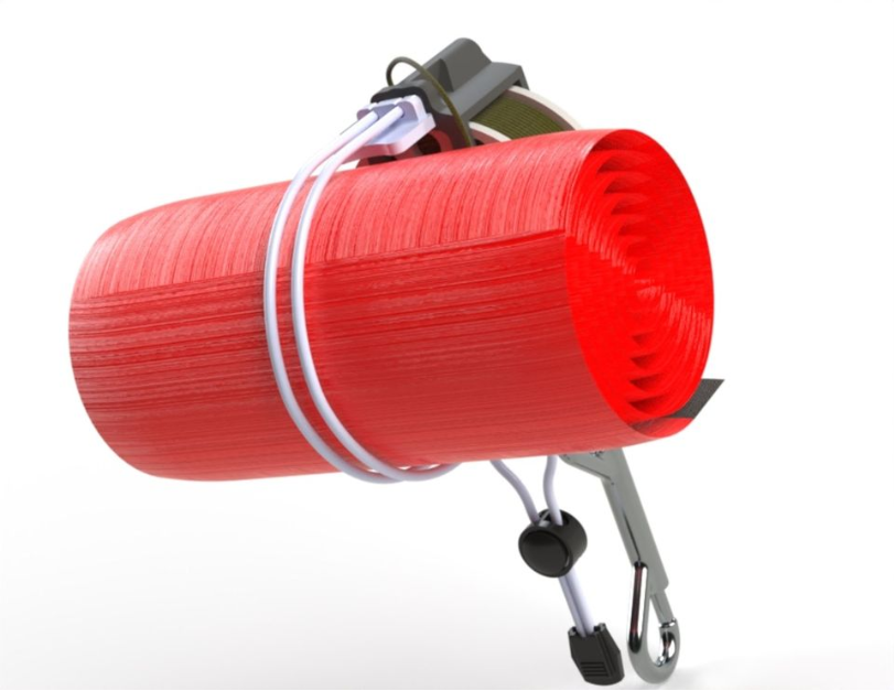 - Sicherungs-Hörner am Gehäuse: Nach dem Aufstieg der Boje kann die Leine fixiert werden, sodass ein weiteres Abrollen verhindert wird.